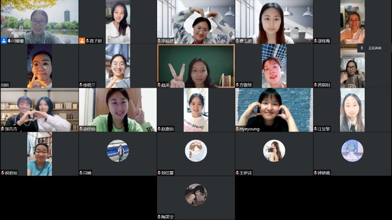 闫姗姗的班级在线上开班会的合影