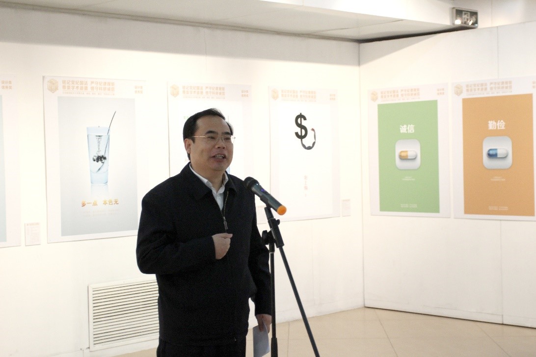 北航新闻网1月8日电(通讯员 贾国利 陈枭)1月8日上午,以“铭记党纪国法、严守纪律规矩、尊崇学术道德、恪守科研诚信”为主题的第五届“廉洁、诚信、勤俭”创意作品大赛展览开幕暨颁奖仪式在北航艺术馆举行。校党委副书记程基伟出席仪式并讲话,纪委办公室、党委研究生工作部、党委宣传部、机关党委、安全保卫处、财务处、新媒体艺术与设计学院等部处和学院负责人、获奖学生代表参加了仪式。开幕暨颁奖仪式由新媒体艺术与设计学院党总支书记沈旭昆主持。