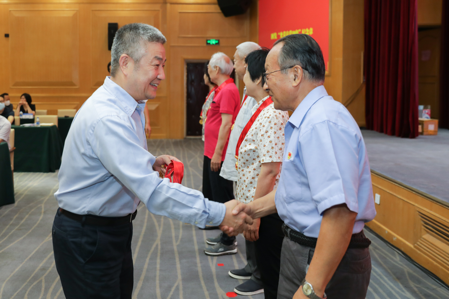 校党委书记赵长禄为老党员代表颁发“光荣在党50年”纪念章