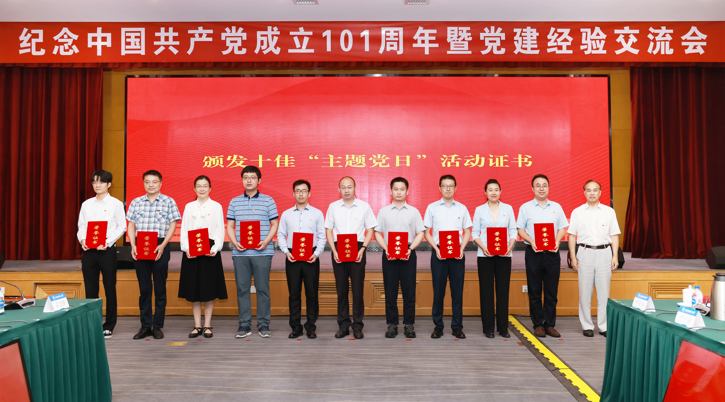 党委副书记、纪委书记何新洲为获奖单位颁发“十佳”主题党日活动证书。