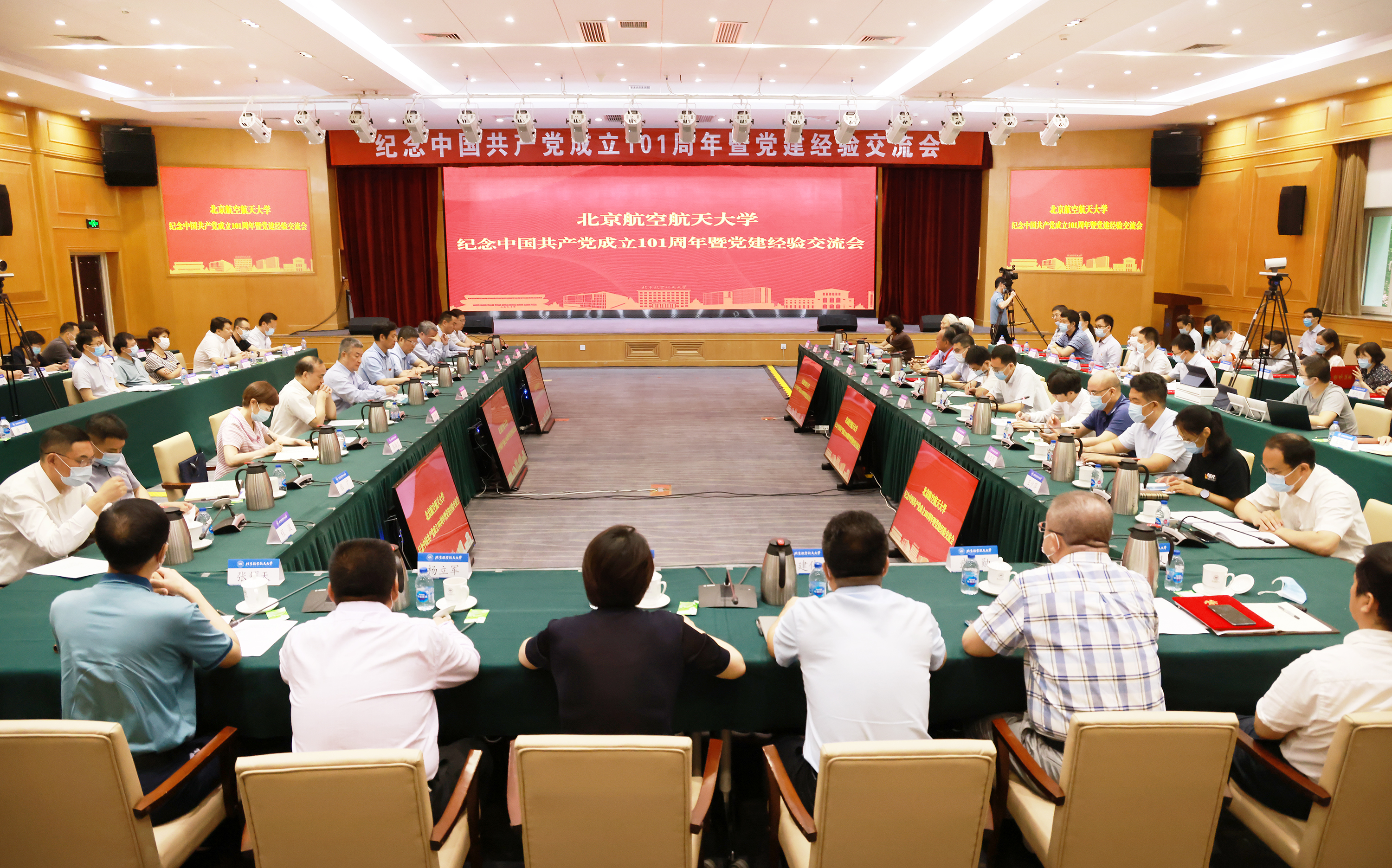 北航新闻网6月28日电(记者 王晴 通讯员 王佳发/文 记者 邸白鹭 宋超/摄影)6月28日上午,我校在如心会议中心大报告厅举行纪念中国共产党成立101周年暨党建经验交流会。校党委书记赵长禄,党委副书记、校长徐惠彬,在校校领导、党群部门负责人、各党委(党总支)书记、老党员和获奖代表等现场参会,各单位班子成员、专职组织员、师生党支部书记等通过视频参会。会议由党委副书记赵罡主持。