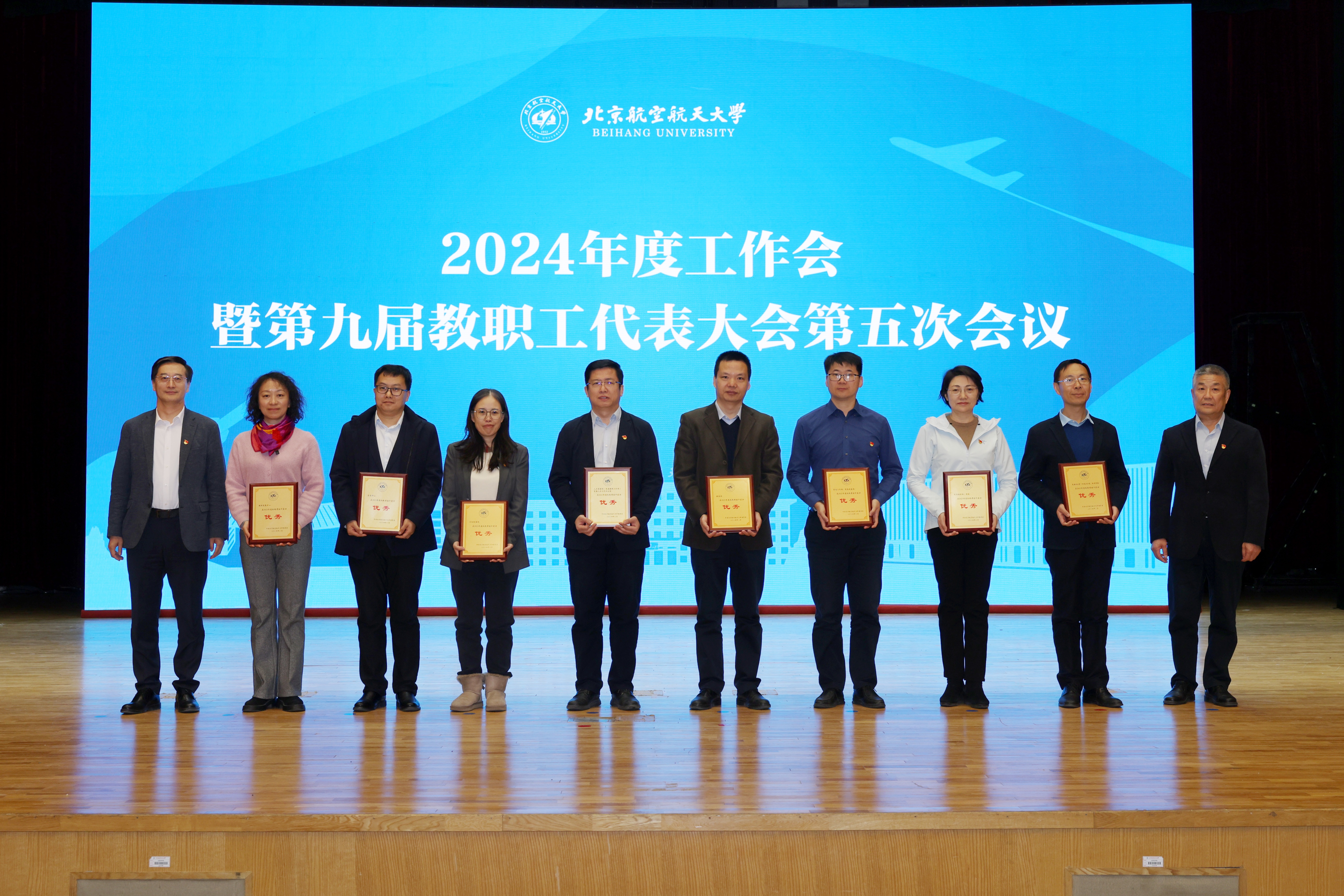 会上表彰了2023年度机构考核优秀单位,材料科学与工程学院、自动化科学与电气工程学院、能源与动力工程学院、航空科学与工程学院、计算机学院、宇航学院、沈元学院、马克思主义学院、航空发动机研究院、集成电路科学与工程学院、党政办公室、党委组织部、学生工作部、教务部、人力资源部、计划财务部、学生中心、教师发展中心获2023年度机构考核优秀单位。党委书记赵长禄、校长王云鹏为考核优秀单位颁发奖牌。