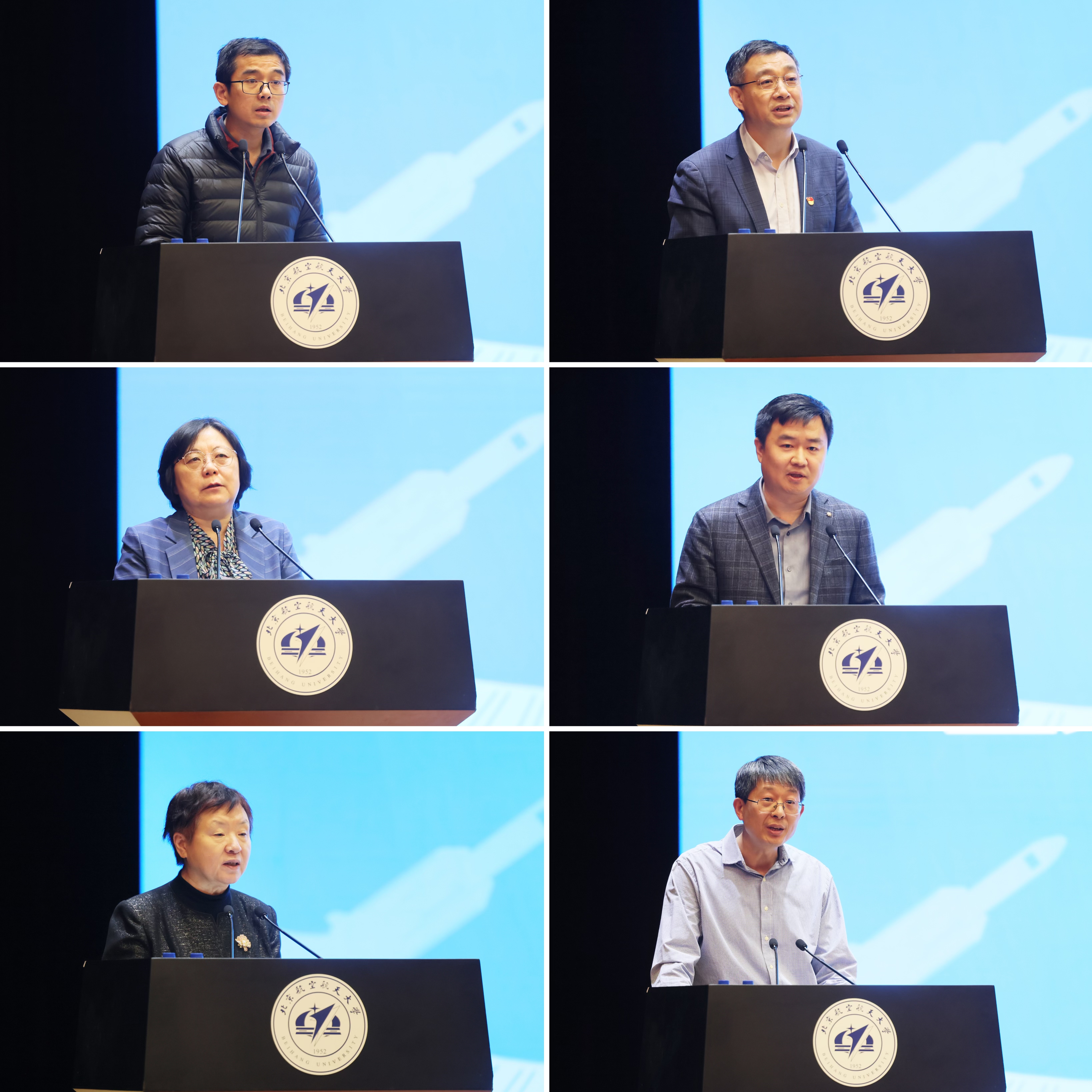 航空科学与工程学院院长潘翀,仪器科学与光电工程学院院长徐立军,经济管理学院院长范英,化学学院院长刘明杰,前沿科学技术创新研究院教授、中国工程院院士苏东林,化学学院教授赵勇分别作为各组代表发言