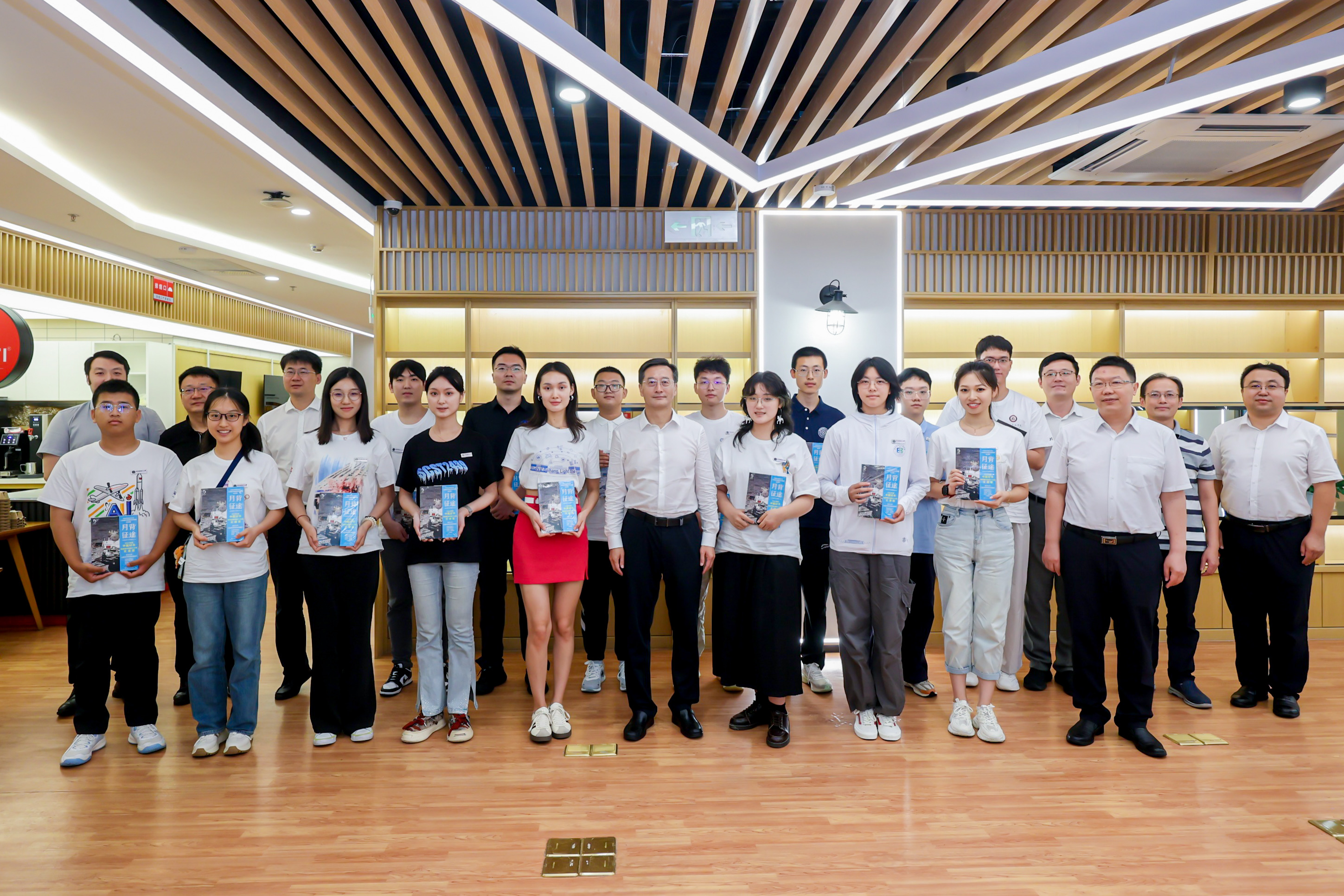 座谈会后,赵长禄、王云鹏为新生代表们赠送书籍《月背征途》,并与同学们合影留念。