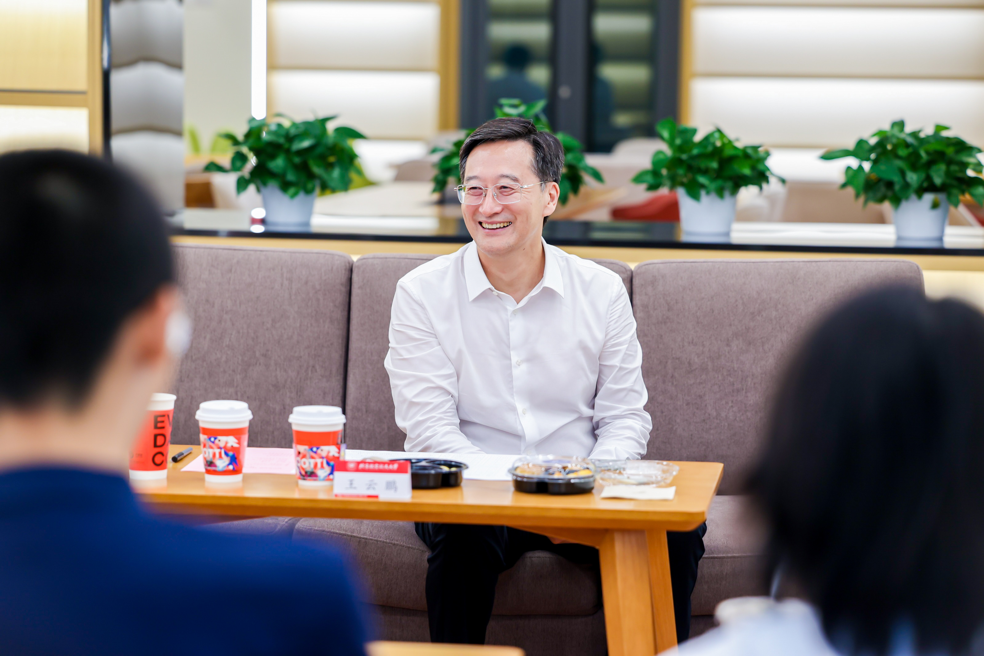 赵长禄、王云鹏来到新生们中间,与同学们一一握手,向他们入学北航、成为新北航人表示热烈祝贺与欢迎。座谈会现场气氛轻松热烈,同学们敞开心扉、畅所欲言,结合自身成长感悟,分享了报考北航的缘由、入学北航的感受以及对大学生活的期待与规划。