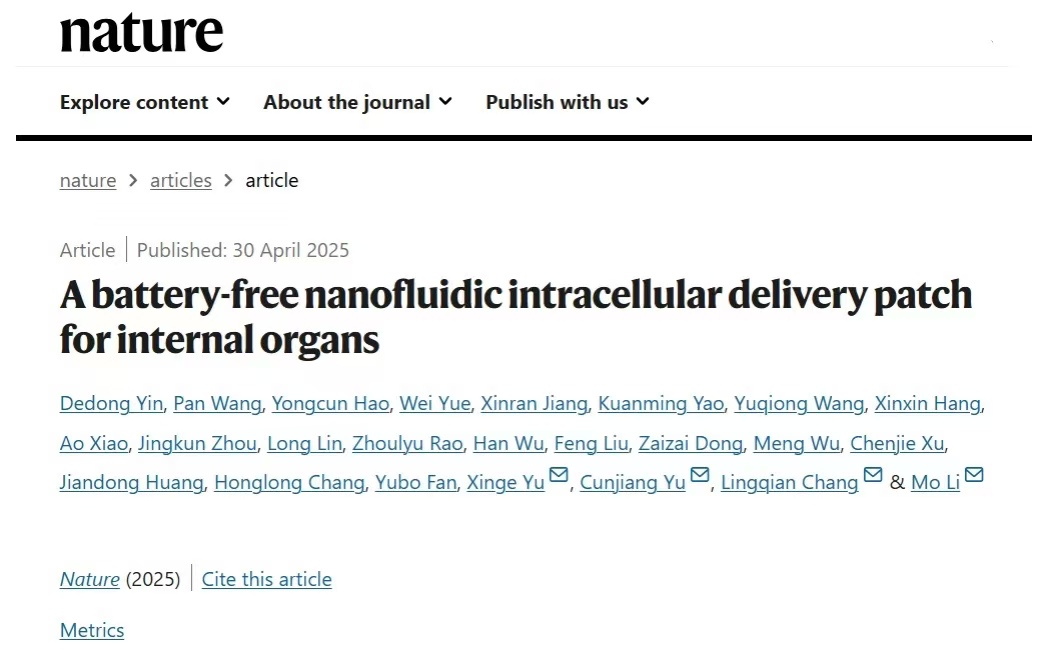 北航新闻网5月2日电(记者 冯浩)近日,北京欧美大片ppt免费大全生物与医学工程学院常凌乾团队与合作者研发一种柔性可植入式电子贴片(NanoFLUID),相关成果于2025年4月30日发表于《Nature》杂志。