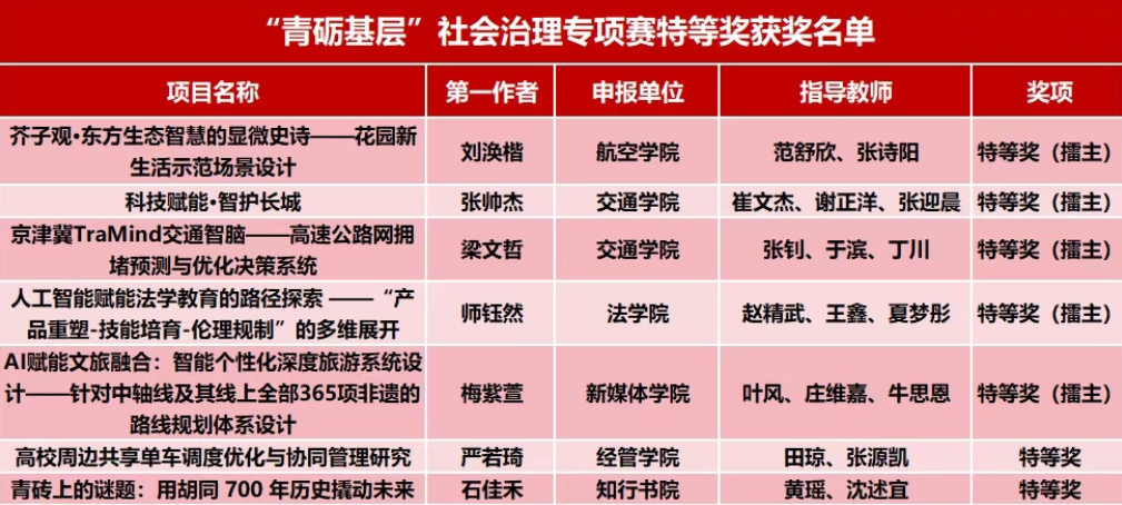 本届竞赛打造“一杯两赛三揭榜”赛制,设置“挑战杯”课外学术科技作品竞赛主体赛、“青聚AI”人工智能专项赛、“青智未来”新质生产力专项赛、“青振京郊”乡村振兴专项赛、“青砺基层”社会治理专项赛。自竞赛启动以来,共吸引全市82所高校7164个项目20余万名学生参赛。