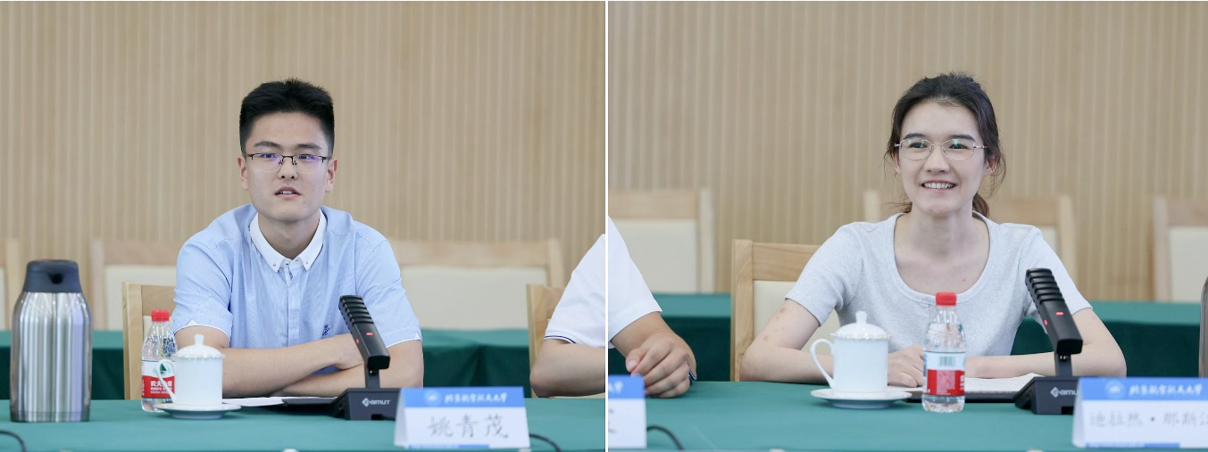 座谈会上,同学们动情讲述求学期间的点滴成长,分享交流在北航吸取的智慧和力量,并表达了对母校的感激与不舍。数学科学学院姚青茂分享自己在“数智交叉”领域的科创经历,表示将继续深入探索人工智能与数学的交叉研究。交通科学与工程学院迪拉然·那斯江讲述参与“畅叙疆来”实践队以专业赋能乡村振兴、促进民族团结的难忘经历,表示将努力把实践所学转化为推动个人成长的坚实力量。飞行学院鲁翰宸分享了成长为民航飞行员的奋斗故事,表示将努力为祖国民航事业贡献青春力量。国际学院王浩回顾了作为首批萨尔瓦多留学生,从语言零基础到顺利毕业并取得优异成绩的北航故事,表示将继续为筑牢中萨友谊贡献力量。