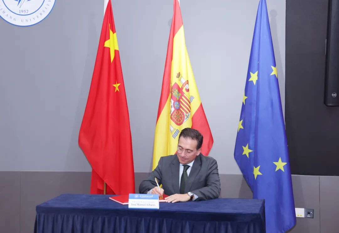 西班牙驻华大使玛尔塔·贝坦索斯(Marta Betanzos)、西班牙驻上海总领事路易斯·卡尔沃(Luis Antonio Calvo)、西班牙瓦伦西亚自治区教育厅秘书长艾斯特尔·戈麦斯(Esther Gómez),西班牙瓦伦西亚理工大学校长何塞・卡比亚(José Esteban Capilla)、副校长何塞·F·蒙塞拉特(Jose F. Monserrat),杭州市委教育工委专职副书记、市教育局党组副书记陈萍,余杭区副区长罗建强,北航副校长赵巍胜及师生代表参加活动。会议由赵巍胜主持。