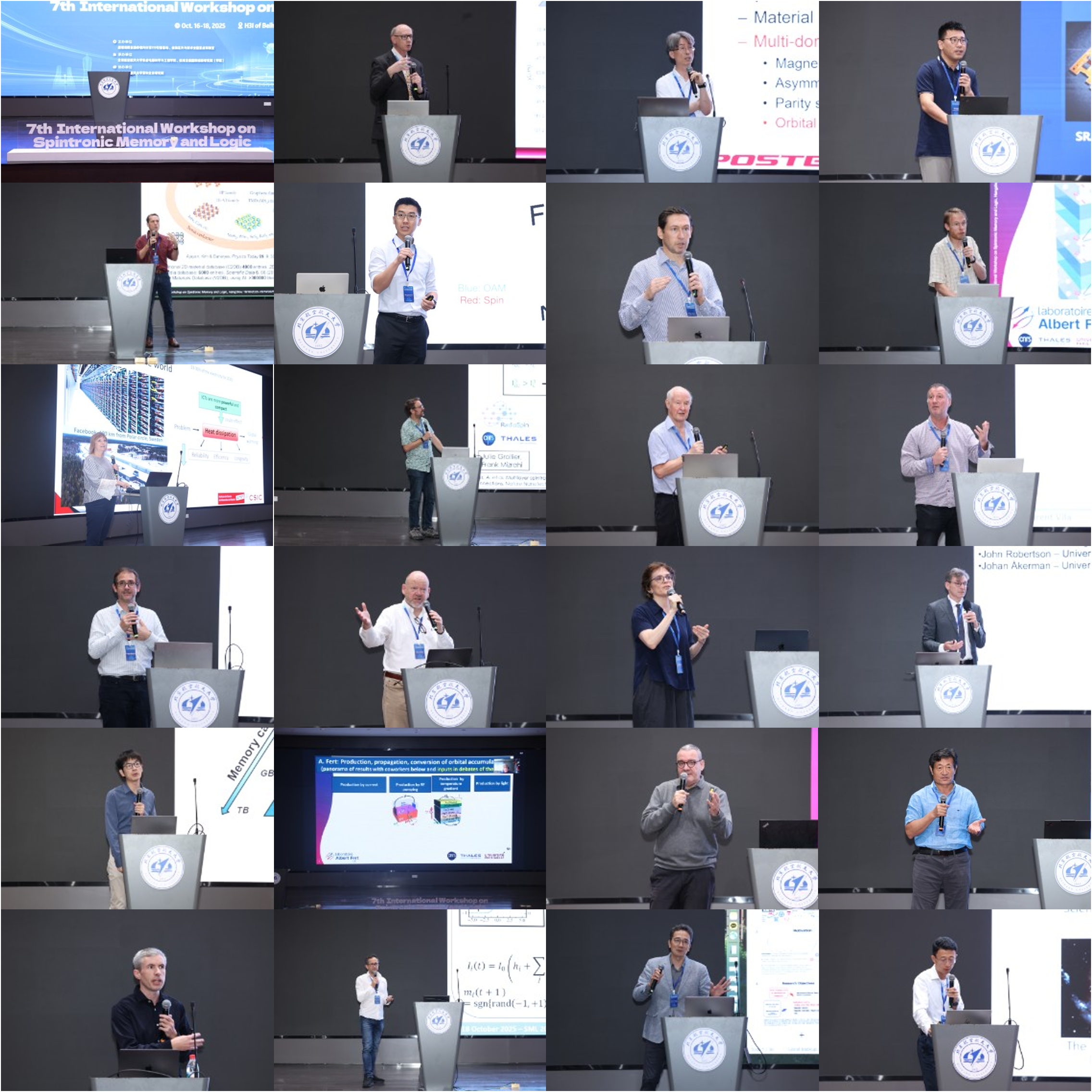 在为期三天的研讨会中,二十余位国际知名专家报告了他们在自旋电子学前沿领域的最新研究进展。法国巴黎萨克雷大学Albert Fert教授、韩国浦项科技大学Hyun-Woo Lee教授、韩国高丽大学Dongwook Go教授、巴西里约热内卢联邦大学Tatiana G. Rappoport教授、法国艾克斯-马赛大学Aurelien Manchon教授、沙特阿卜杜拉国王科技大学Xixiang Zhang教授以及法国国家科学研究中心Henri Jaffres教授,分别从理论与实验角度系统阐述了轨道电子学的物理机制及其潜在应用方向。法国格勒诺布尔阿尔卑斯大学Laurent Vila教授、英国剑桥大学Jason Robinson与John Robertson教授、加州大学伯克利分校Jeongmin Hong教授、澳大利亚新南威尔士大学Oleg Tretiakov教授、香港中文大学Yan Zhou教授及瑞典哥德堡大学Johan Åkerman教授,重点介绍了亚铁磁磁畴壁器件、自旋超导、自旋拓扑孤子及自旋纳米振荡器等方面的研究进展。法国洛林大学Stephane Mangin教授深入探讨了超快自旋电子学的物理机制与器件集成策略;西班牙加泰罗尼亚纳米科学与纳米技术研究所Sergio O. Valenzuela教授展示了通过近邻自旋轨道场实现石墨烯的定向自旋调控方案;西班牙马德里材料科学研究所Oksana Chubykalo-Fesenko教授介绍了磁结构中热梯度诱导的动态调控;法国巴黎萨克雷大学Nicolas Vernier教授展示了NV色心磁成像领域的最新成果;致真存储(北京)科技有限公司CTO刘宏喜分享了SOT-MRAM的产业化发展进程。