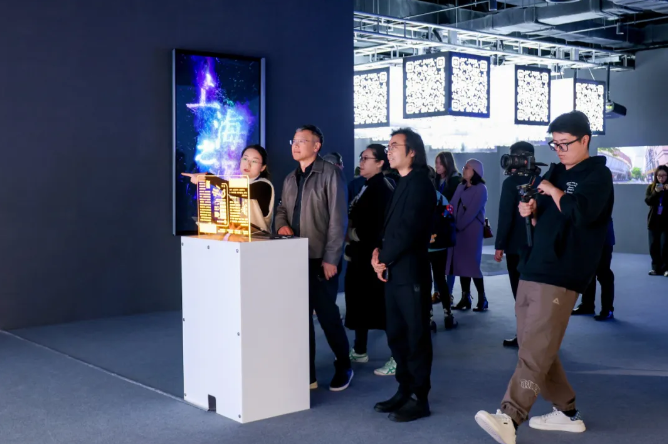 开幕式上,北航党委书记赵长禄,国家版本馆党委委员、副馆长李英,北航新媒体艺术与设计学院院长沈旭昆,中国国家画院原副院长张江舟,中国传媒大学动画与数字艺术学院院长王雷共同按下启动键,北航沙河校区艺术馆正式开馆,“丹青绘盛世,笔墨启新篇”特藏精品展、“光影苍穹”数字艺术展两个主题展览正式开幕。