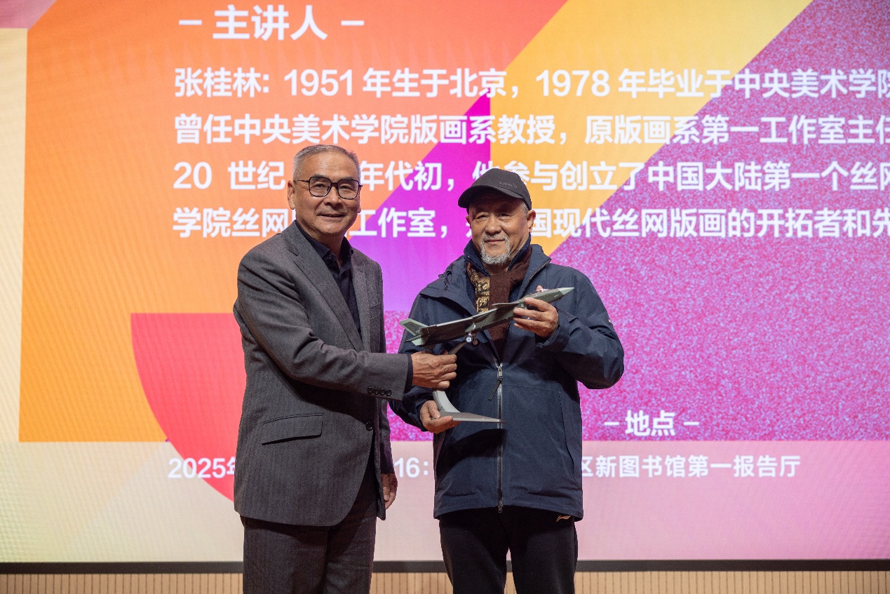 北航新闻网10月24日电(通讯员 高蕊)为庆祝北航建校73周年暨沙河校区艺术馆开馆,10月22日下午,北航美育中心特邀中国现代丝网版画的开拓者和先行者之一、原中央美术学院版画系教授、版画系第一工作室主任张桂林做客美育大讲堂,为师生带来开馆系列活动的第二场美育主题讲座“中国丝网版画发展与探索”。讲座由北航美育中心副主任宋泽惠主持。