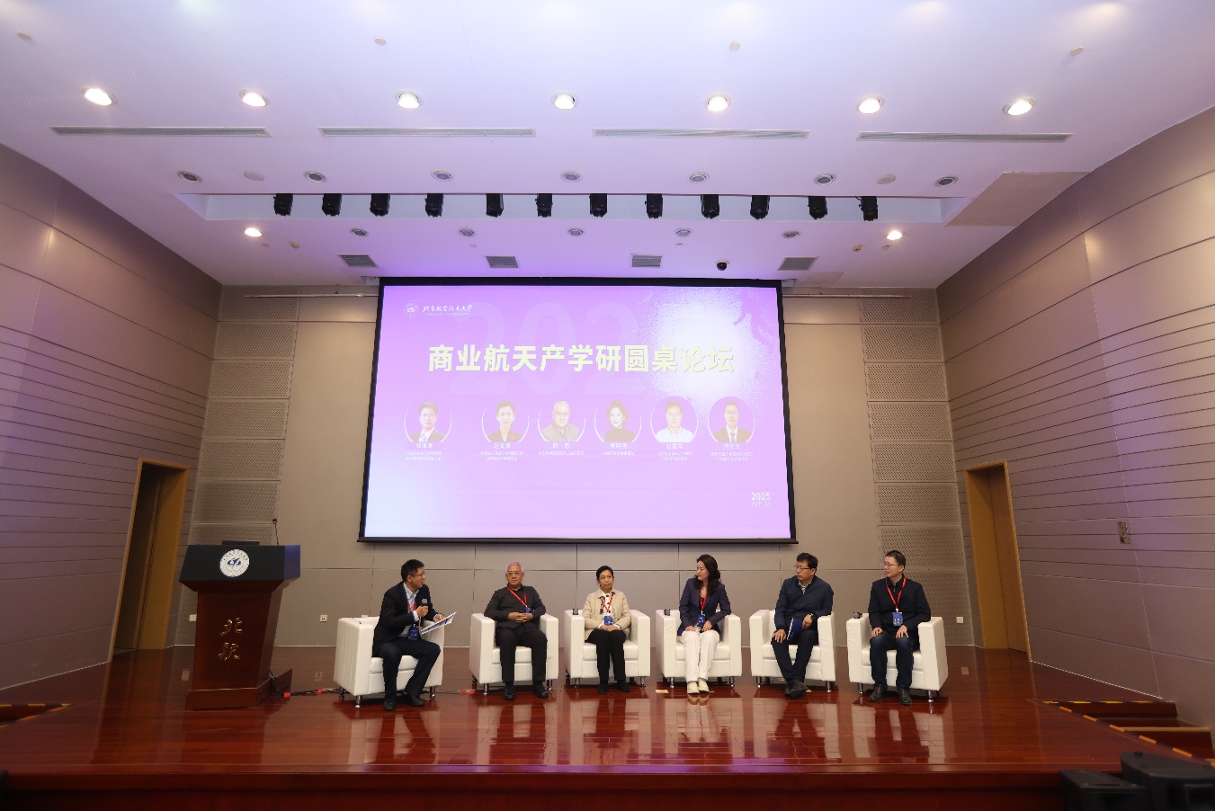 商业航天产学研圆桌论坛,由北航经济管理学院党委书记郑海涛主持,对话国家航天局高分专项副总师、国际宇航科学院院士赵文波,中国科学院国家天文台研究员赵有,中商汇投基金董事长窦明明,北航宇航学院副院长张振华,航天工程大学空间目标感知全国重点实验室办公室主任刘德生。论坛聚焦商业航天发展过程中产学研融合面临的机遇与挑战,通过观点分享、思想碰撞,为商业航天安全有序发展和产学研深度融合进行了深入的讨论。