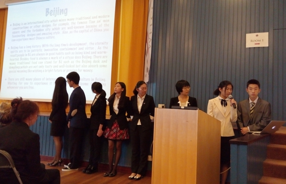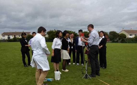 在交流期间,北航附中的同学们向英国师生介绍了北航附中的学习、校园生活,精彩的汇报,流利的英文,赢得了英国师生的阵阵掌声。师生们还参与到了历史、科学、数学和英语等课堂中,参加了校方特别为北航附中学生开设的特色科技课堂和烹饪课堂,让同学们进行体验式的学习、交流。在科技课上,英国老师指导北航附中学生完成了水火箭的制作,讲授如何应用ipad记录操作流程及制图,并展示了在贮满水、不充分贮水和不贮水的情况下三种火箭的发射,让学生领悟不同情况下发射水火箭的状况,在活动中通过教师点拨,学生们用不同的学习方法进行了体验式、探究式的学习,体会颇深。