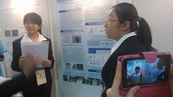 来自不同国家和地区的数学、物理、环境科学、生命科学、电脑科学共五组海报展示和口述展示非常精彩,不同文化背景的参会者们一起探索未知事物,交流汇报自己的发现和成果。当我们谈到水资源净化、过氧化氢的反应、荧光灯对于一些植物的危害等等话题,其他国家的学生们也踊跃发言,我们真切地感受到知识是共通的、科学是没有国界的。
