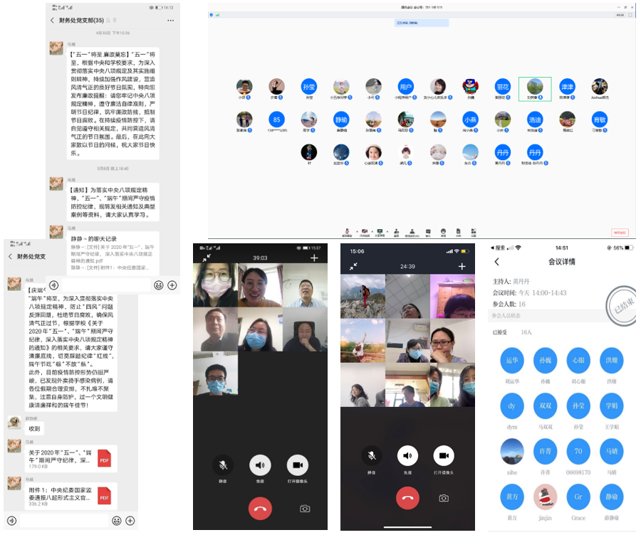 支部组织开展《党旗飘扬,筑牢红色防火墙》主题党课,由支部书记许菁同志围绕习近平总书记关于疫情防控重要讲话和指示批示精神,从国家、学校、财务处三个层面介绍各级组织在应对疫情的决策部署和当下战斗形势,号召党员守初心担使命并坚定最终能够打赢疫情防控阻击战的信心。许菁同志介绍了国家在统筹做好疫情防控和经济社会发展工作中的部署要求,生动展示了广大党员干部不顾个人安危冲在一线的战疫情景;要求党员同志在工作中做好个人防护,严格执行学校在防疫、教学科研、毕业离校等多项重点工作的决策安排;通报了财务处党支部统筹协调在战疫期间协调推进压缩预算过“紧日子”、全面采用自助投递、开发OA线上审批、优化改造信息系统、坚持“党员先上”原则保障重点业务等工作进展情况,要求各位党员用实际行动感召周围群众,履行员工应尽义务,做好财务保障工作,并始终严格遵守上级和学校的各项防疫要求,不到胜利不言放松。