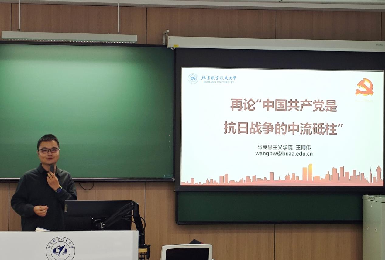 马克思主义学院讲师王博伟为学员讲授《再论“中国共产党是抗日战争的中流砥柱”》专题党课。王博伟从中国何以持久抗战、中共何以全面抗战、动员何以持久进行、再论“中流砥柱”四个方面,讲述了中国共产党在抗日战争中发挥的重要作用以及做出的巨大贡献;同时结合习近平总书记在纪念中国人民抗日战争暨世界反法西斯战争胜利80周年大会上的讲话精神,以“中国人民从昨天坚定走来,也将为人类的明天奋战到底”阐释了纪念中国人民抗日战争暨世界反法西斯战争胜利的深刻内涵。