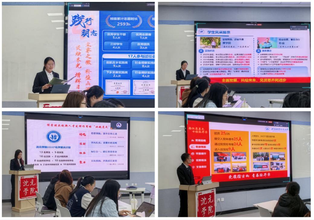 答辩人结合班级的实际情况,分别从思想理论学习、学风建设、班集体文化、志愿实践等方面对集体建设进行了全面阐述,充分展现了沈元学子团结友爱、积极向上、奋勇当先的精神风貌。会后,评委分别进行总结发言,对参与答辩的班集体的突出表现给予充分肯定,勉励同学们在交流分享中能学习其他集体的优秀做法,不断总结提高,在学习反思中明确未来建设和改进方向,并予以实践,将集体共建为充满活力、拥有深厚文化底蕴和独特精神标识的大家庭。