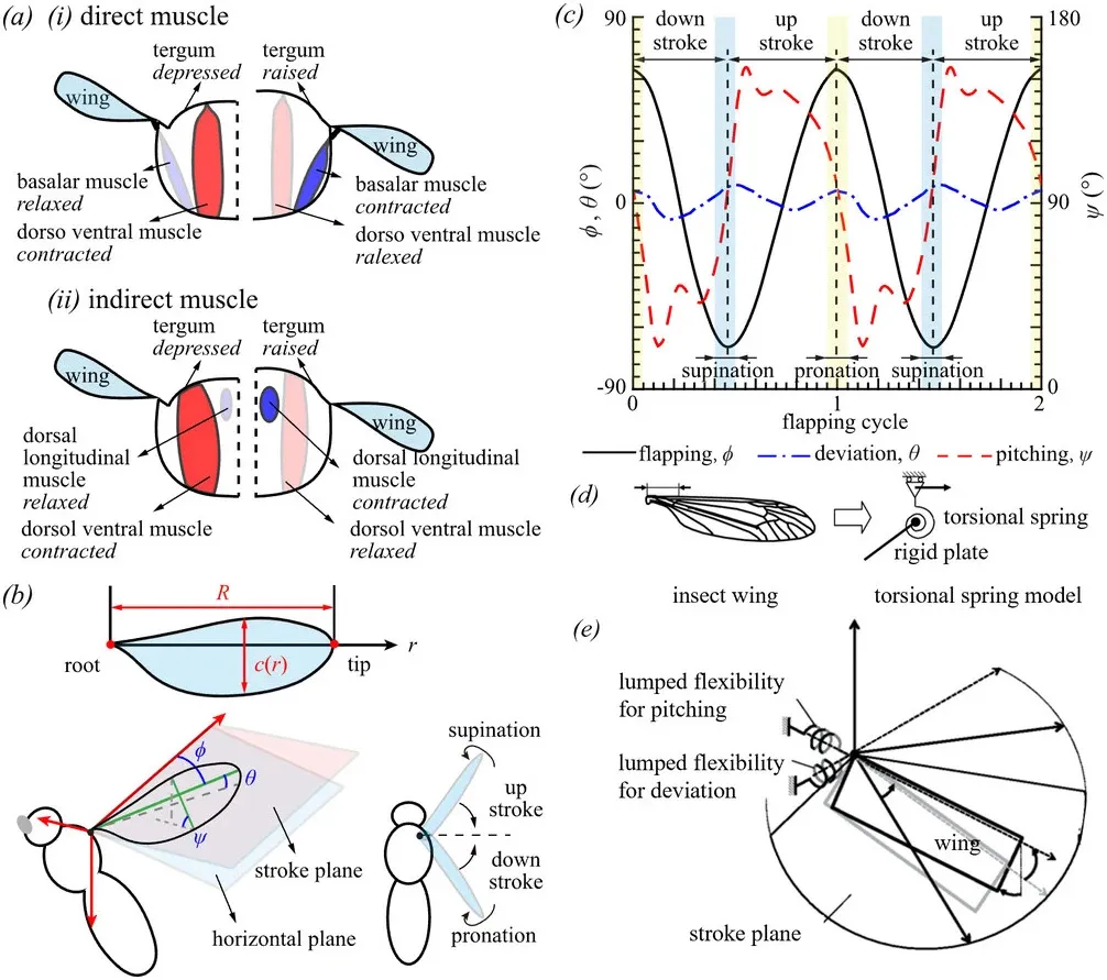 图2:昆虫飞行肌肉与翅膀运动示意图