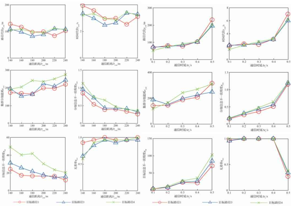 通信距离对共识决策性能指标的影响和通信时延对共识决策性能指标的影响