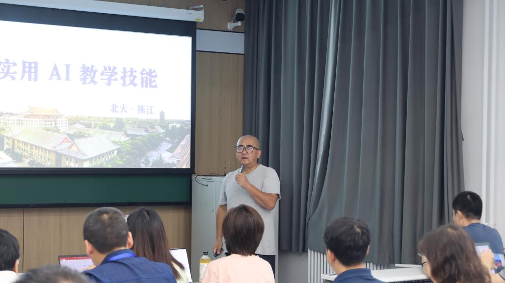 9月5日,北京大学陈江教授受邀作了题为“实用AI教学技能”的专题讲座。讲座中,陈江围绕AI大模型在教学场景的实用价值展开,从五个方面进行讲解与演示。在直接应用AI方面,他演示无线投屏、主观题接龙、AI+分组讨论等如何调动学生积极性。在间接应用AI方面,他重点围绕教师常用的Office软件展开,同时分享纸质文档电子化转换、思维导图智能生成及高品质PPT制作方法。此外,陈江还针对多媒体教学需求,讲解图像编辑生成的优化技巧,演示“图生视频”的操作流程等,并展示数字人在教学场景的应用潜力。讲座尾声,陈江特别强调“教师不仅要持续学习AI技术,更关键的是将AI工具与自身教学优势深度融合。”
