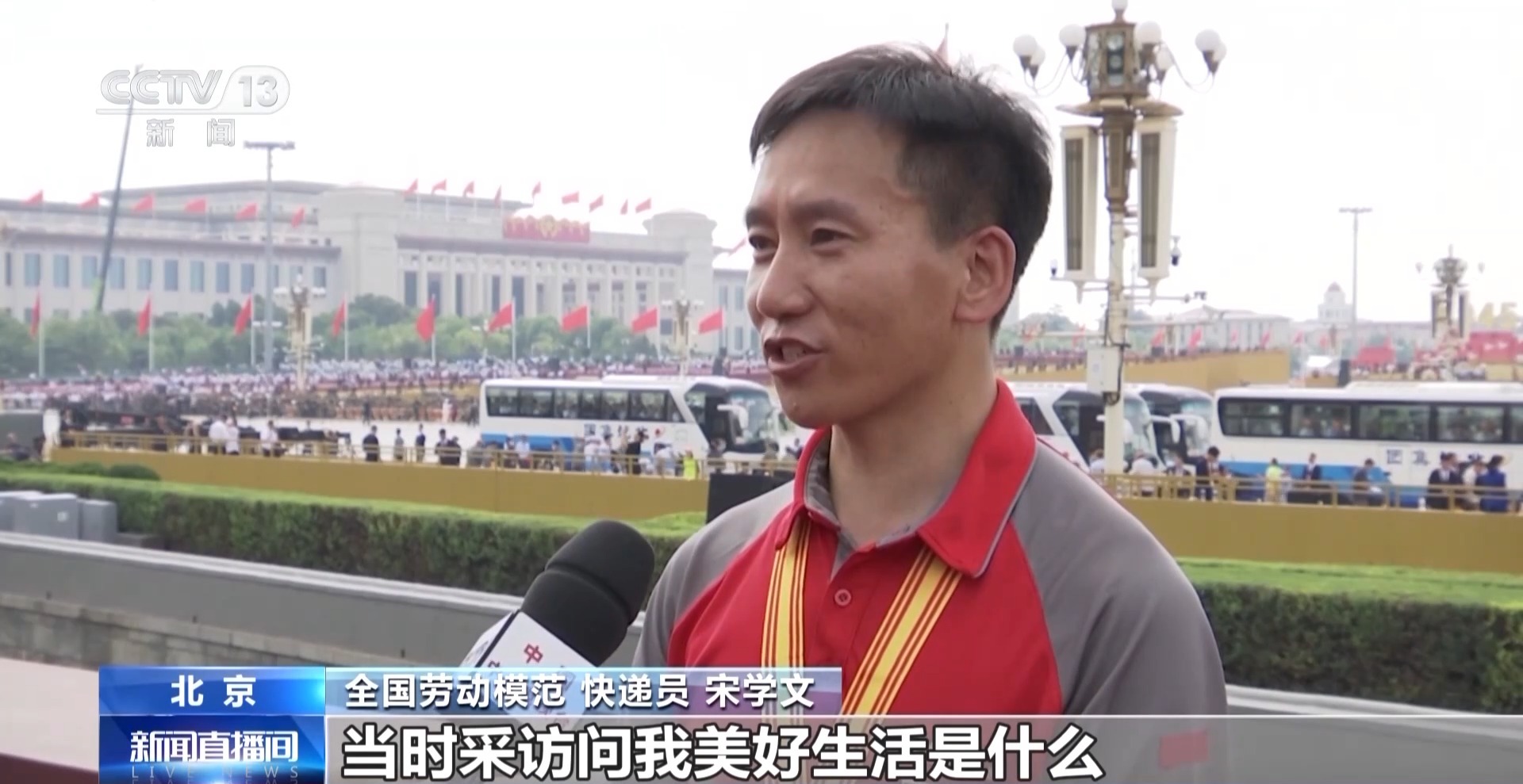 全国劳动模范 快递员 宋学文:2019年,我参加国庆70周年群众游行,当时采访问我美好生活是什么,我说我们现在的生活就是美好生活。但是我觉得今天看到现场好多新装备,还有战士的精气神儿,我觉得特别踏实、特别安心。我相信我们的美好生活也会越来越好,我们的民族伟大复兴势不可挡。