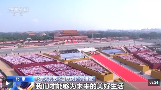 北京人民艺术剧院院长 冯远征:有一个瞬间让我特别难忘,总书记到了城楼以后,跟近百岁的抗战老兵一一握手的时候,能感受到国家对他们的重视。我们的年轻人应该铭记这些,把历史上的创痕永远刻在心里,才能够知道今天的幸福生活是来之不易的。这也是对文艺工作者的启迪,让我们如何把历史呈现给观众。我们只有铭记,才能为未来的美好生活去开创更好、更多的机遇。