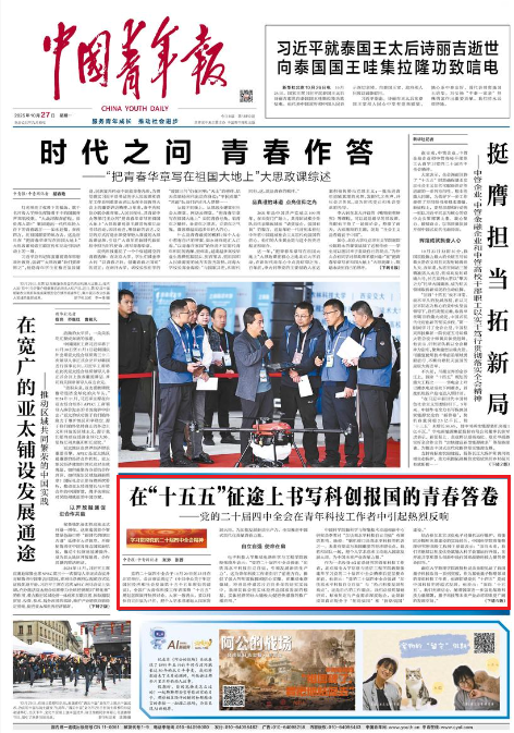 《中国青年报》头版2025年10月27日(中青报·中青网记者 张渺 张茜)报道: