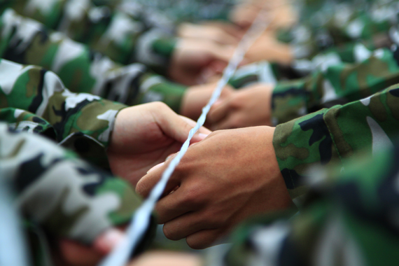 体育场上军训的新生们汇成了动人的绿色海洋,把这灼灼赤日带来的炎热幻化为一种激情,一种飒爽,一种关乎青春的绽放!