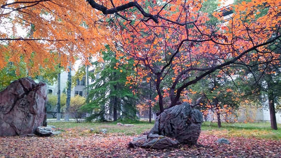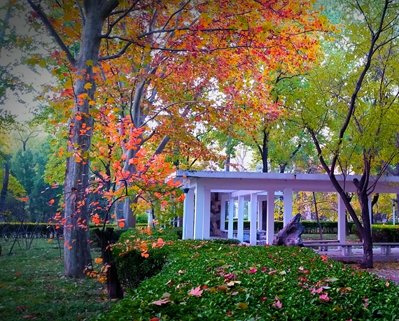 阳光洒满校园,微云缓缓流动。 漫步在北航教学区,聆听那饱经了春之蓬勃、夏之繁盛后,秋的故事。 岁月如沙过,弹指流年间。 一切赞美与宠爱都隔离在澹澹秋光外,这,是一个沉淀感悟、收获成熟的季节。 在冷空气的催促下,多情的秋摇撒一地落叶,仿佛在与我们轻声话别 “不必远送,明年还来!” 静默·庄严 坚守·起飞 落叶满阶红不扫 澹澹秋光 红颜 燃烧 叶落之声 藏匿的金光 数树深红出浅黄 新霜彻晓报秋深 遐思 画卷 天生灵物在尘间