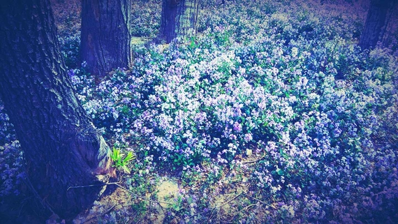 许是这几日听见了春风的召唤,北门的二月兰竟一片一片开起来了。
