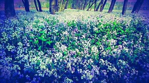 “眼光所到之处,无不有二月兰在。只要有空隙的地方,都是一团紫气,间以白雾,小花开的淋漓尽致,气势非凡,紫气直冲云霄,连宇宙都仿佛变成紫色的了。”