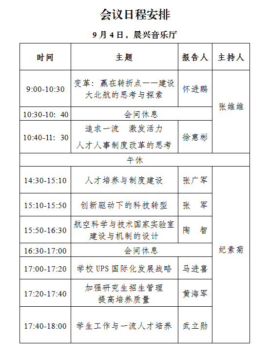 学校2014年暑期工作会议定于2014年9月4日(周四)-9月5日(周五)在校内召开。本次会议以“深化综合改革,推进国际化发展战略,全面提升学校办学能力,加快建设世界一流大学”为主题,以国际化视野和战略思维,深入分析新形势下加快世界一流大学建设的思路和举措,探讨一流学院建设理念和路径,分享优秀团队和杰出人才的发展经验和体会,把握发展机遇,激发办学动力,不断深化综合改革,推动体制机制创新,提高服务国家战略能力,提升国际办学水平,加快建设根植于中国的世界一流大学。