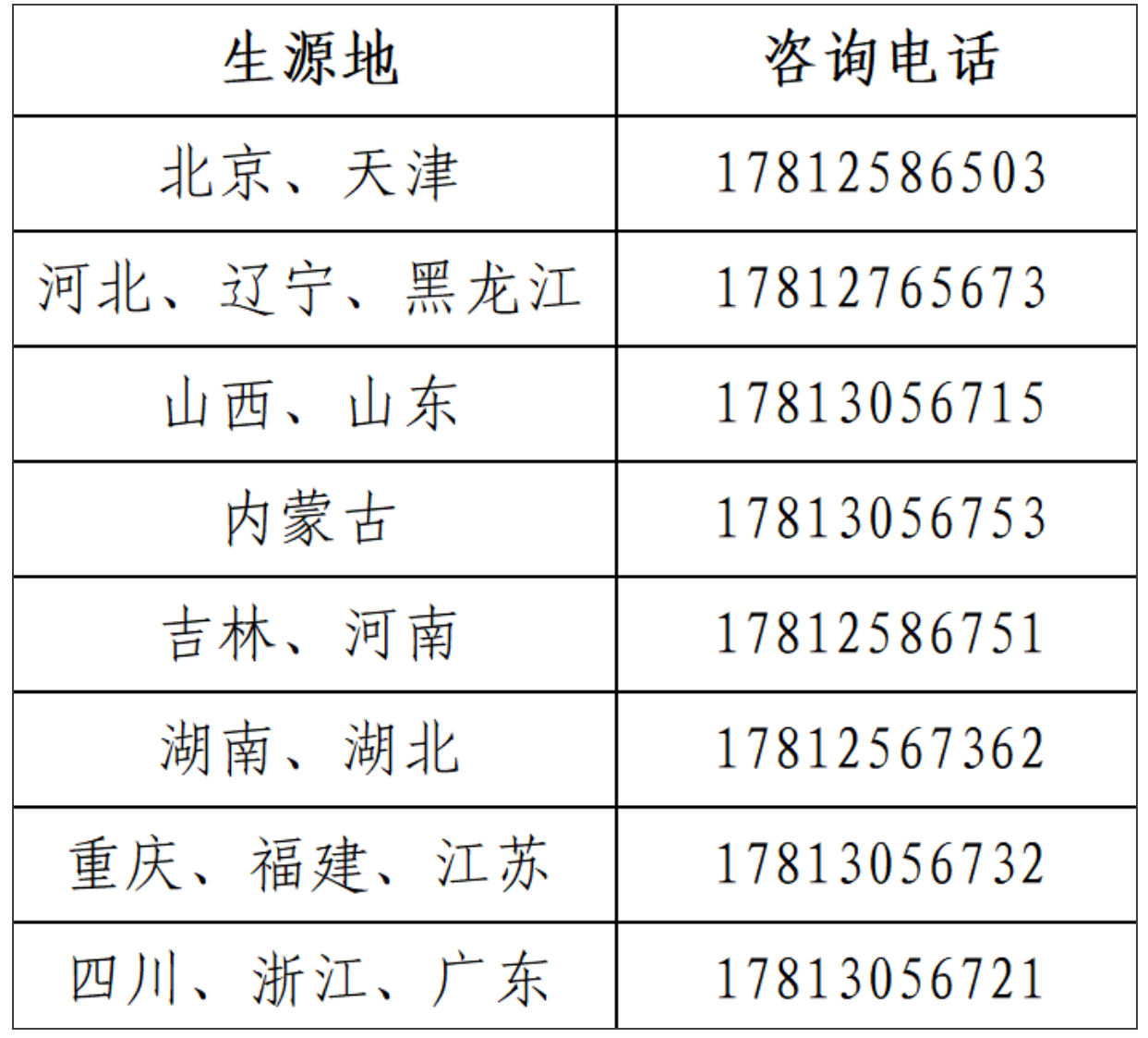 面向北京、天津、河北、山西、内蒙、辽宁、吉林、黑龙江、江苏、浙江、福建、山东、河南、湖北、湖南、广东、重庆、四川等18个省份招生。分省招生计划以各省级招生考试机构公布为准。