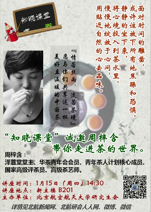 周梓含:泽萱堂堂主、华茶青年会会员、青年茶人计划核心成员、国家高级评茶员、高级茶艺师。师从中国著名茶学名家王琼老师,秉承“借茶修为以茶养德”的精神,潜行研茶、学习茶修。致力于推广传统文化及博大精深的中国茶文化,并创办国学文化交流中心“泽萱堂”。 2014年6月,泽萱堂被“中华茶人联谊会”授予“青年茶人之家”的荣誉称号。曾多次应邀参加“中华茶人太湖雅集”、“华茶青年重走茶路万里行”、“第九界世界禅茶大会”等国内外茶文化交流活动。