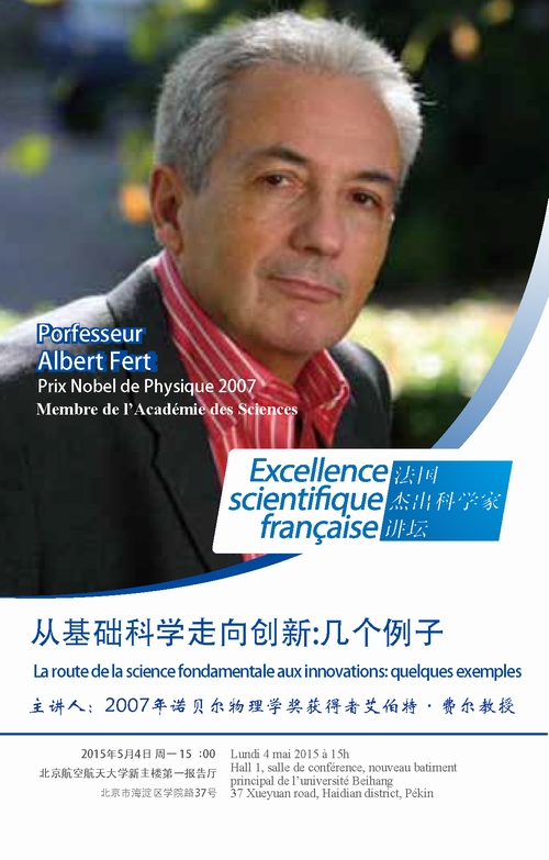 艾伯特·费尔(Albert FERT),1938年3月7日出生于法国奥德省卡尔卡松,是法国物理学家,凝聚态物理学和自旋电子学领域的著名专家,硕士毕业于巴黎高等师范学院,1970年获得巴黎第十一大学物理学博士学位。1962年至1976年先后在法国格勒诺布尔大学和巴黎第十一大学工作。1976年成为巴黎第十一大学教授。从1970年到1995年艾伯特·费尔先生一直在巴黎第十一大学理学院固体物理实验室领导一个研究组。1995年负责成立巴黎第十一大学、法国科学研究中心和Thales集团物理联合科研单位并担任科学主管至今。艾伯特·费尔是法国科学院院士,他曾获得多个国家和国际奖项,包括法国科学研究中心金奖和因1988年发现巨磁阻(GMR)效应与德国物理学家Peter GRUNBERG获得2007年诺贝尔物理学奖。巨磁阻效应的发现直接推动了高密度存储磁硬盘技术的发展,创造了从基础学科发现到大规模产业化应用的一个成功典范。Albert FERT教授在Nature, Science和Phys.Rev.Lett等重要国际学术杂志发表论文超过350篇,总引用次数超过17,000次。他于2014年6月加盟北京欧美大片ppt免费大全,成立费尔北京研究院并担任首席科学家,教授及博士生导师。