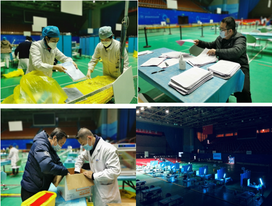 接种团队中还有负责疫苗配送管理、防疫管理和后勤保障的人员,安全有序的接种工作离不开他们的默默奉献。每次现场接种结束后,要打包收拾好医疗垃圾,打扫环境卫生,无论多晚,司机师傅邢俊芳都要在疫苗核对无误后,按照冷链管理的规定运输到指定位置。护理部康立云主任每次都要在进行喷洒及紫外线灯照射消毒后最后一个离开,每当紫外线灯亮起,总是那么让人安心放心。