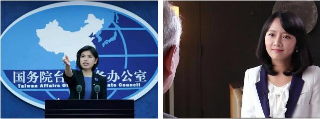 左:国务院台湾事务办公室新闻发言人朱凤莲。右:凤凰卫视驻华盛顿首席记者王冰汝。
