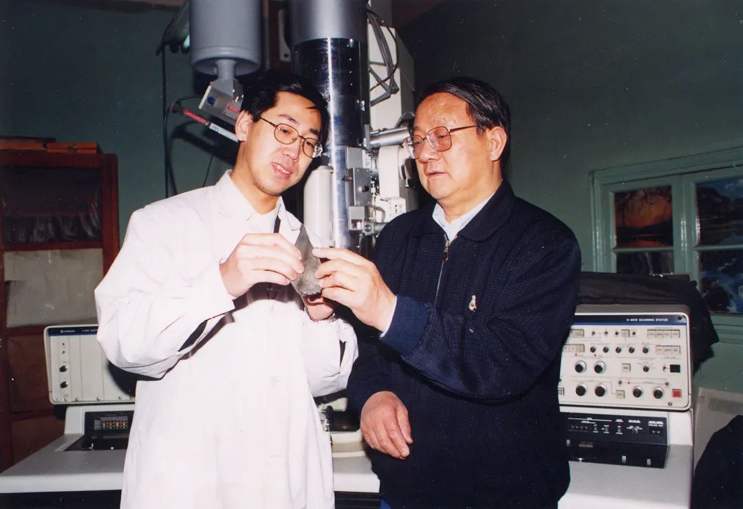 2000年,钟群鹏院士(左)与师昌绪院士在北京