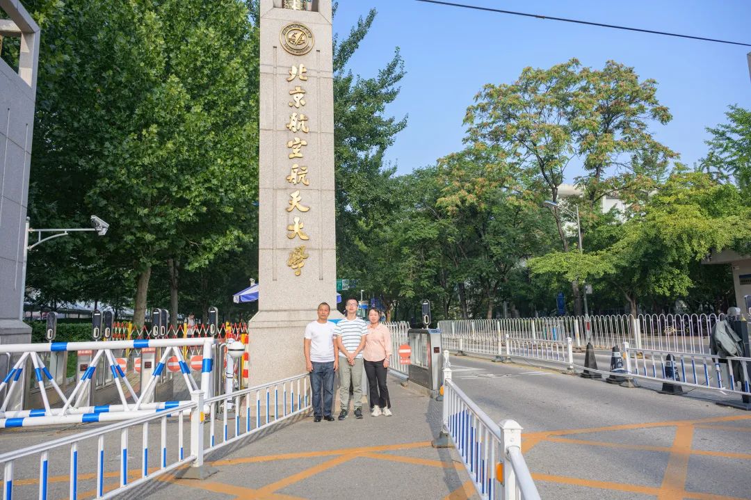 刘鑫(中)和父母在北航校门口