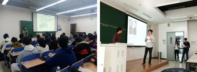 左:陈玉丽《复变函数》的教学课堂;右:《复变函数》由同学主讲的翻转微课堂