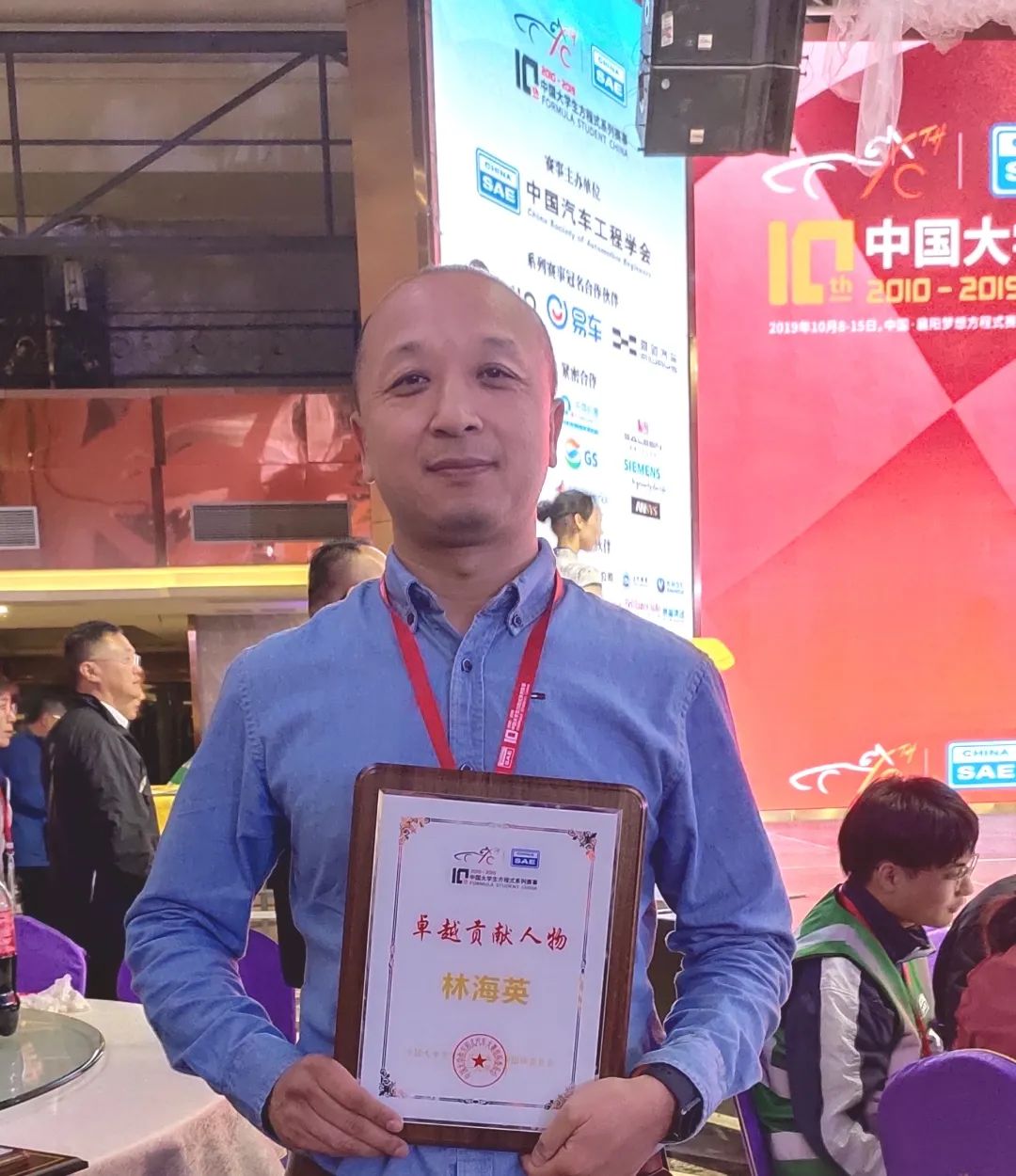 凭借卓越贡献,林海英在全国大学生方程式赛车指导教师界也有很高的知名度。2014年,他受聘成为大赛规则委员会副主任委员。2019年,汽车工程学会授予他中国大学生方程式汽车大赛“卓越贡献人物”称号和“全国优秀指导教师”奖。