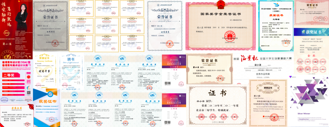 梁小湛获得的荣誉证书照片集锦