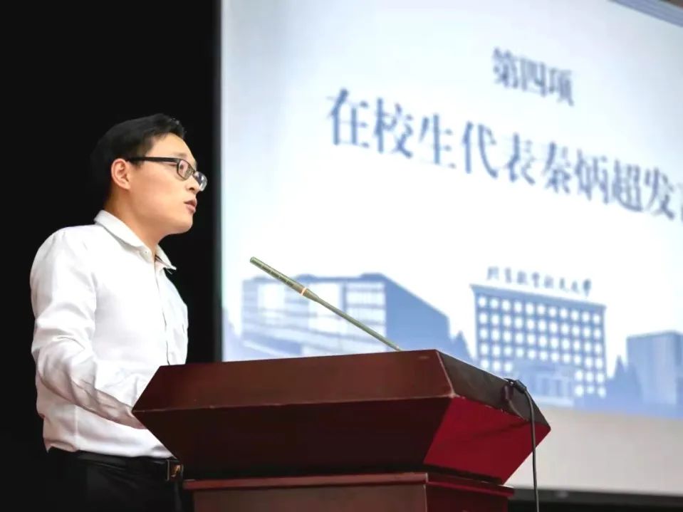 秦炳超作为在校生代表,在学院研究生开学典礼上发言
