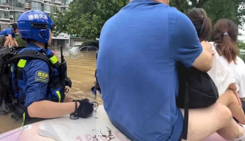 “我们是蓝天救援队,二单元还有人吗?”在房山区某小区,王桢元和他的两位队友趟着过腰深的积水,推着桨板、背着物资,在一个楼门接着一个楼门地转运因为大暴雨受困的居民。