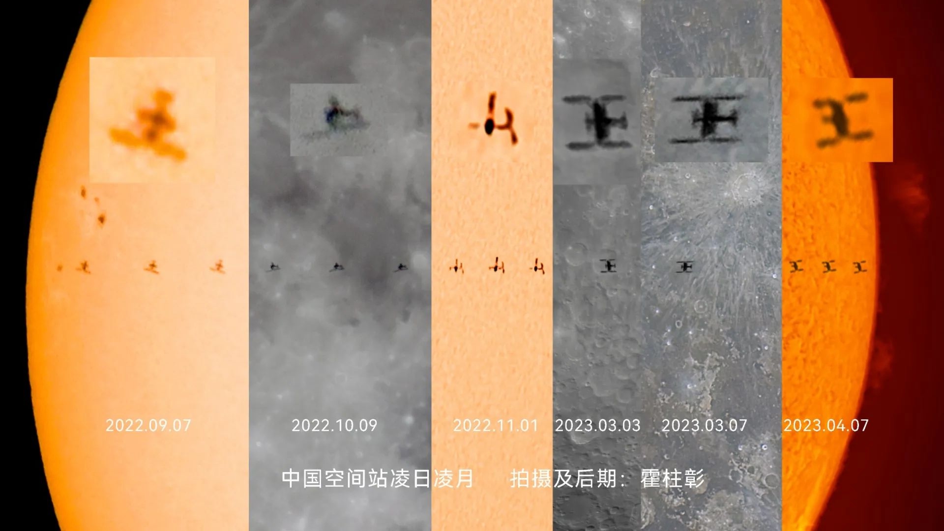中国空间站凌日凌月画面(摄影:霍柱彰)