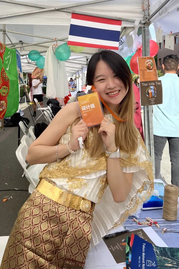 校园里的实践更让我看见设计的跨文化力量。作为两届北航国际文化节设计组长,我带领团队完成了400余件作品。设计泰国展位时,将泰式庙宇的金色纹样与青花瓷的蓝白美学交织,再缀以北航的航天元素。活动当天,不同肤色的师生驻足讨论海报中的文化元素,那一刻我深刻意识到设计在中外文化交流中的深远作用——它不仅是一种视觉呈现,更是一种情感的桥梁,能让文化的精髓穿越语言的障碍,被更多人理解和喜爱。