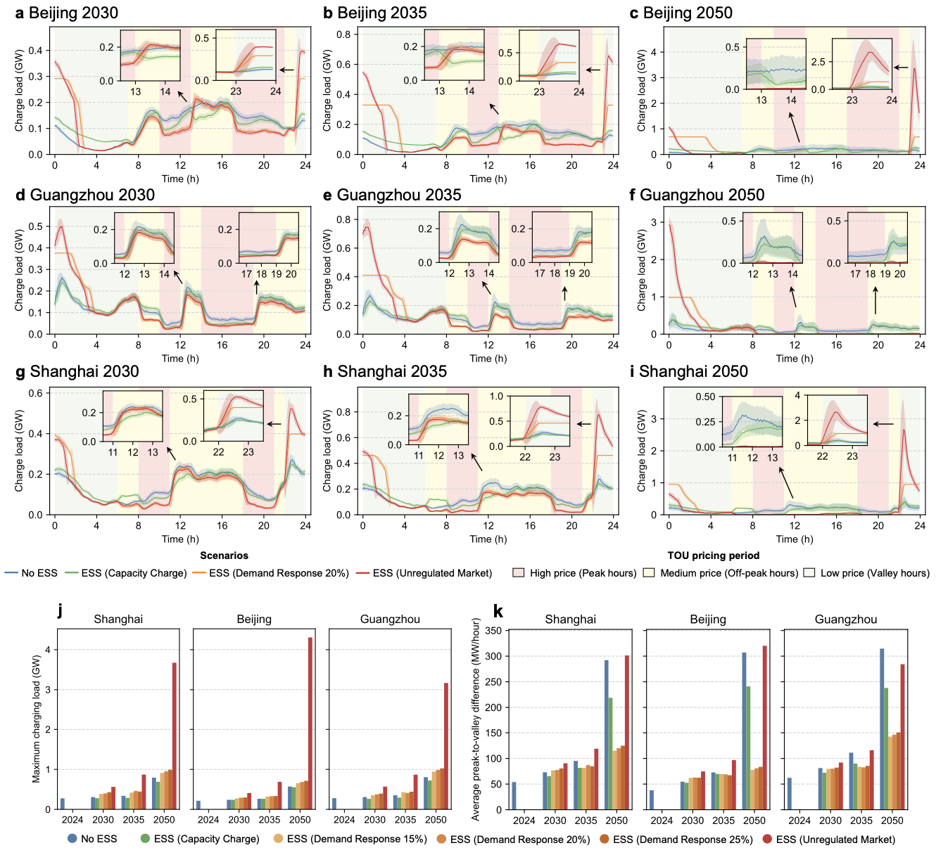 课题组构建了一个大数据驱动的模拟框架,利用来自北京、上海、广州三大城市共计超过76万条的公共充电记录大数据,精确地量化评估了超快充大规模推广对城市电网的动态影响。