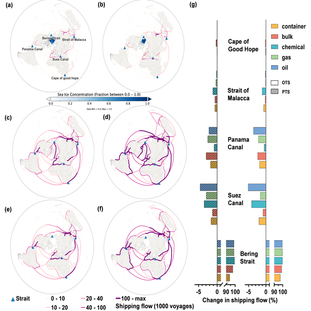 该研究成果以“Arctic Sea Route reshapes global shipping carbon emissions”为题,于2025 年9月29日在线发表在Nature Communications期刊上。赵鹏军为论文第一作者和通讯作者,张彩霞副研究员为论文共同通讯作者。该研究得到国家自然科学基金资助。