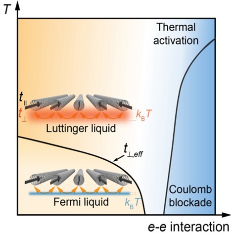 研究团队基于高密度顺排碳纳米管阵列开展了电子关联与维度效应的量子器件输运研究,成功实现了耦合一维电子体系的可控转变。